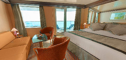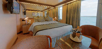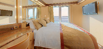 In addition to the normal services and equipment provided in all our cabins, Suite Guests enjoy special privileges to make their stay on board even more pleasant including a choice of pillow from the Pillow Menu, Whirlpool bath, bathrobe and slippers for guests to use throughout their cruise and a dedicated valet assigned to the room.